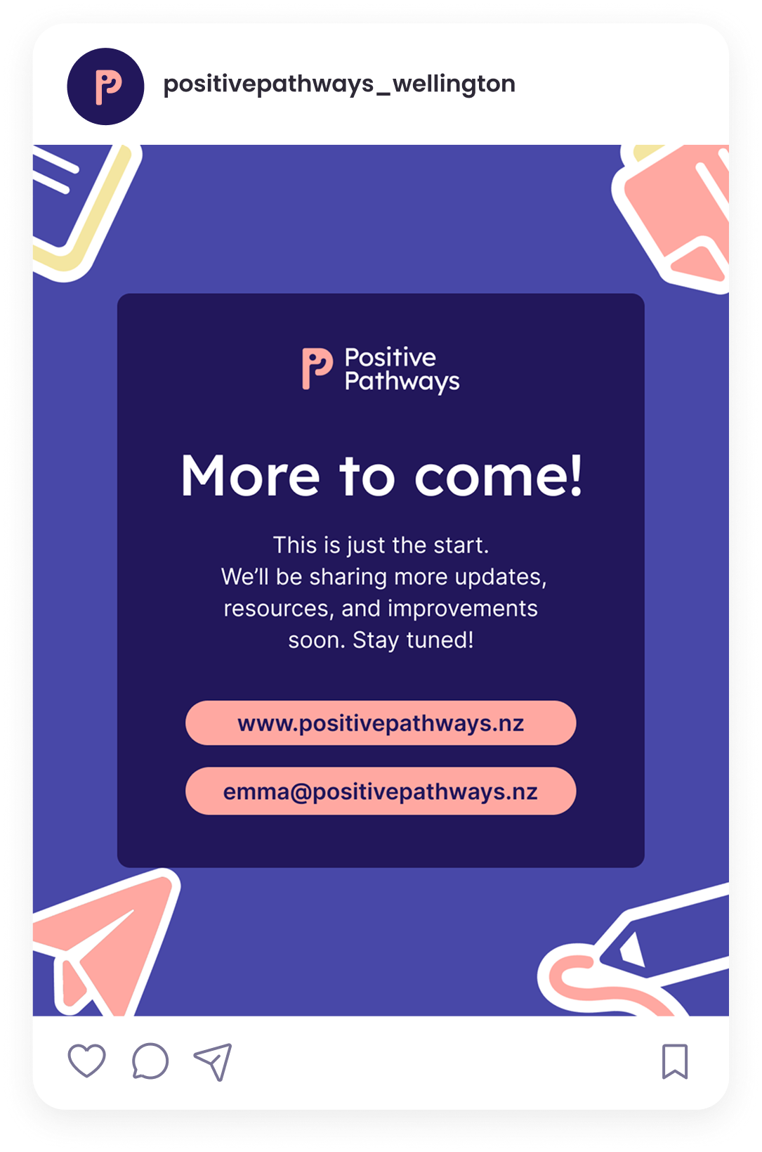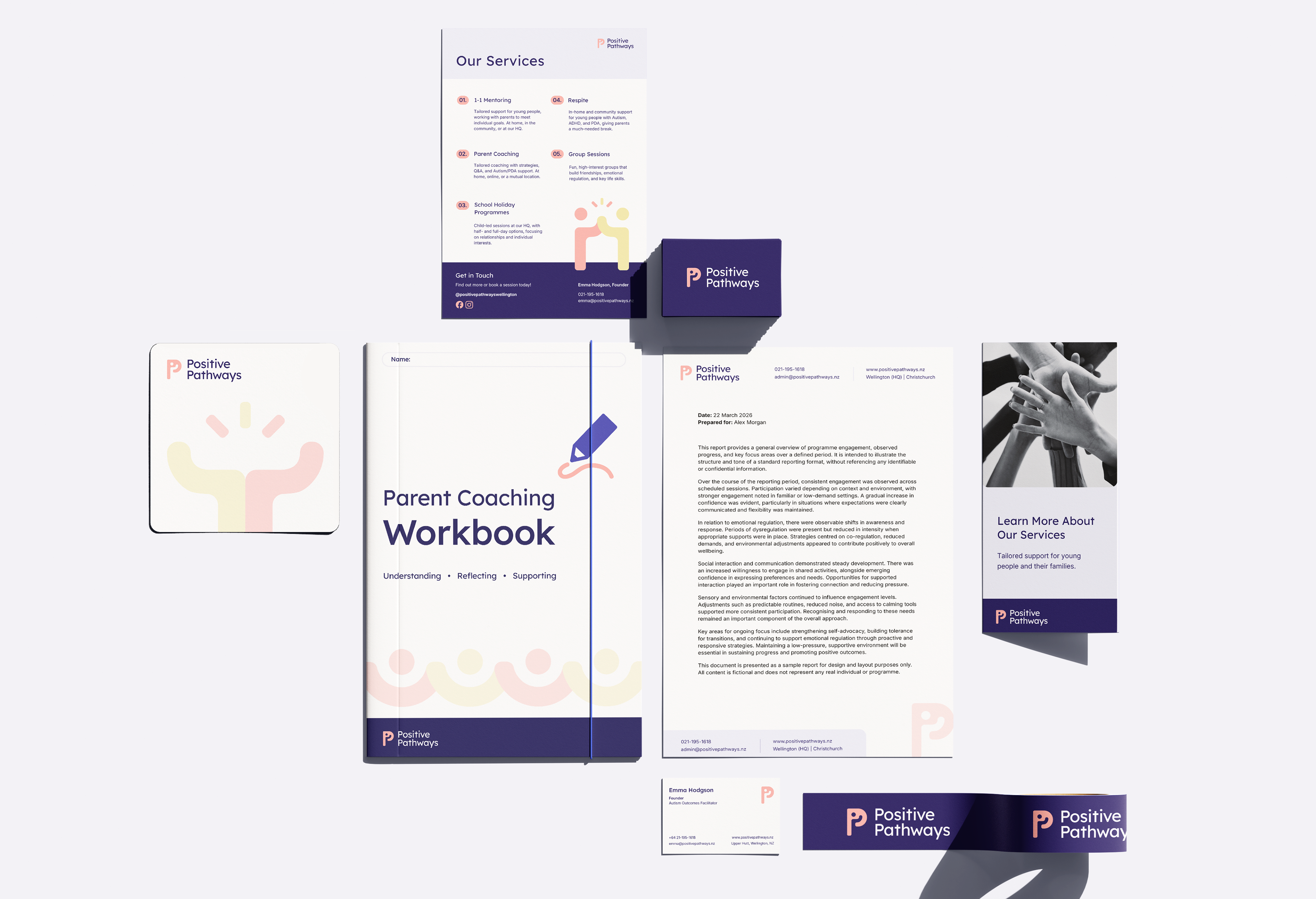 The rebrand for Positive Pathways was driven by a desire to better reflect the organisation’s core values and the heart behind its work. The new visual identity was designed to feel more aligned with who they are today—professional yet friendly, warm, supportive, and approachable.